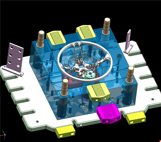 3.脫模設(shè)計(jì):由于方向盤的結(jié)構(gòu)特點(diǎn),脫模設(shè)計(jì)需要特別考慮。如采用頂針、推板等多種脫模方式相結(jié)合,確保在開模時(shí)能夠順利將方向盤從模具中頂出,且不會(huì)對(duì)產(chǎn)品造成損壞。